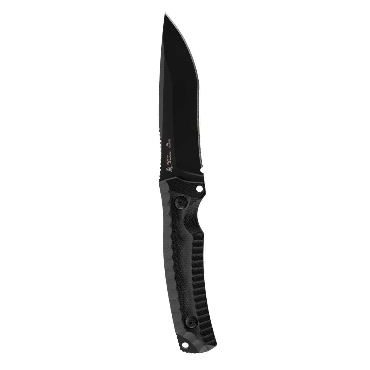 The Hidaka FX is styled by Kiku Matsuda with a decidedly Japanese design aesthetic, featuring a hybrid drop point and tanto blade shape with a black finish.