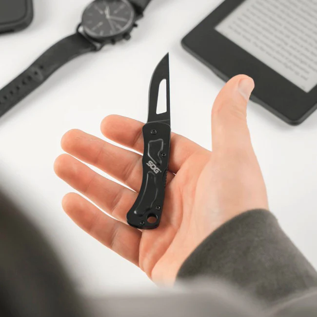 Slimline convenience. Key chain sized with a strong lockback design. Features a SOG sharp blade and stainless steel construction.