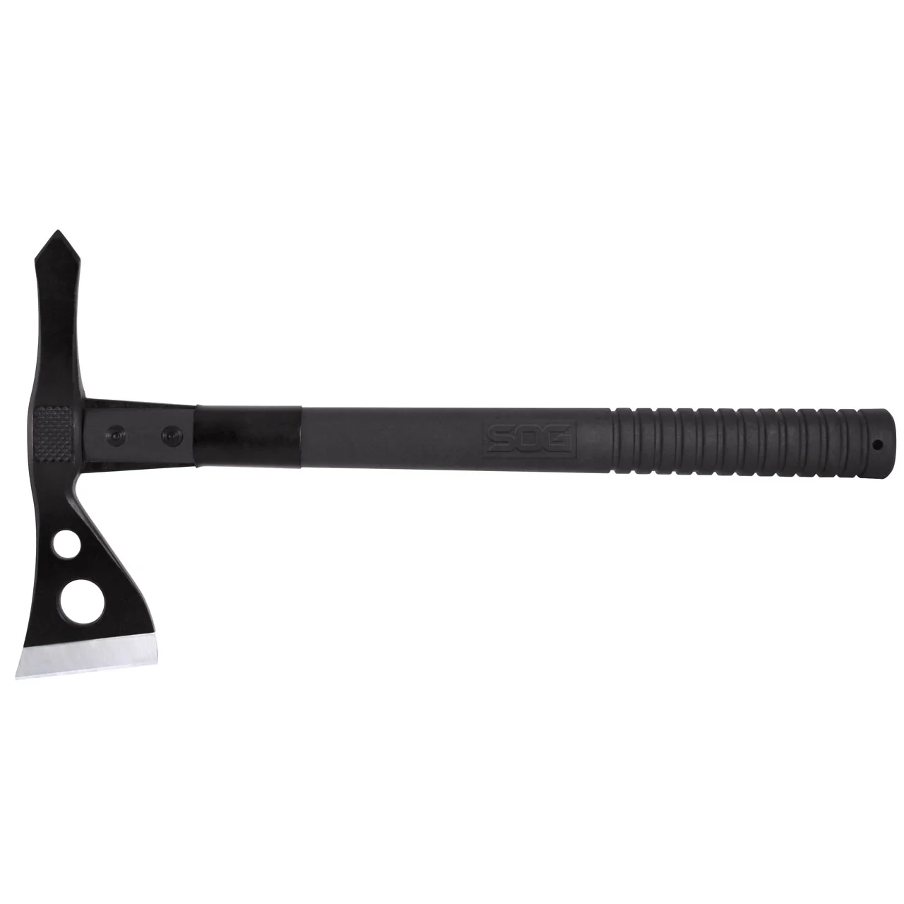 Today there is a real need for a versatile tool for breaching operations, excavation, obstacle removal, extraction and other utility applications. A 15.75" tomahawk with a 420 stainless steel head with hardcased coating is mounted to the fiberglass reinforced nylon handle, with heavy-duty bolts and a steel ferrule for stability. Side hammer checkering insures precise placement when pounding. Carried in a nylon sheath this is a universal tool for modern man.